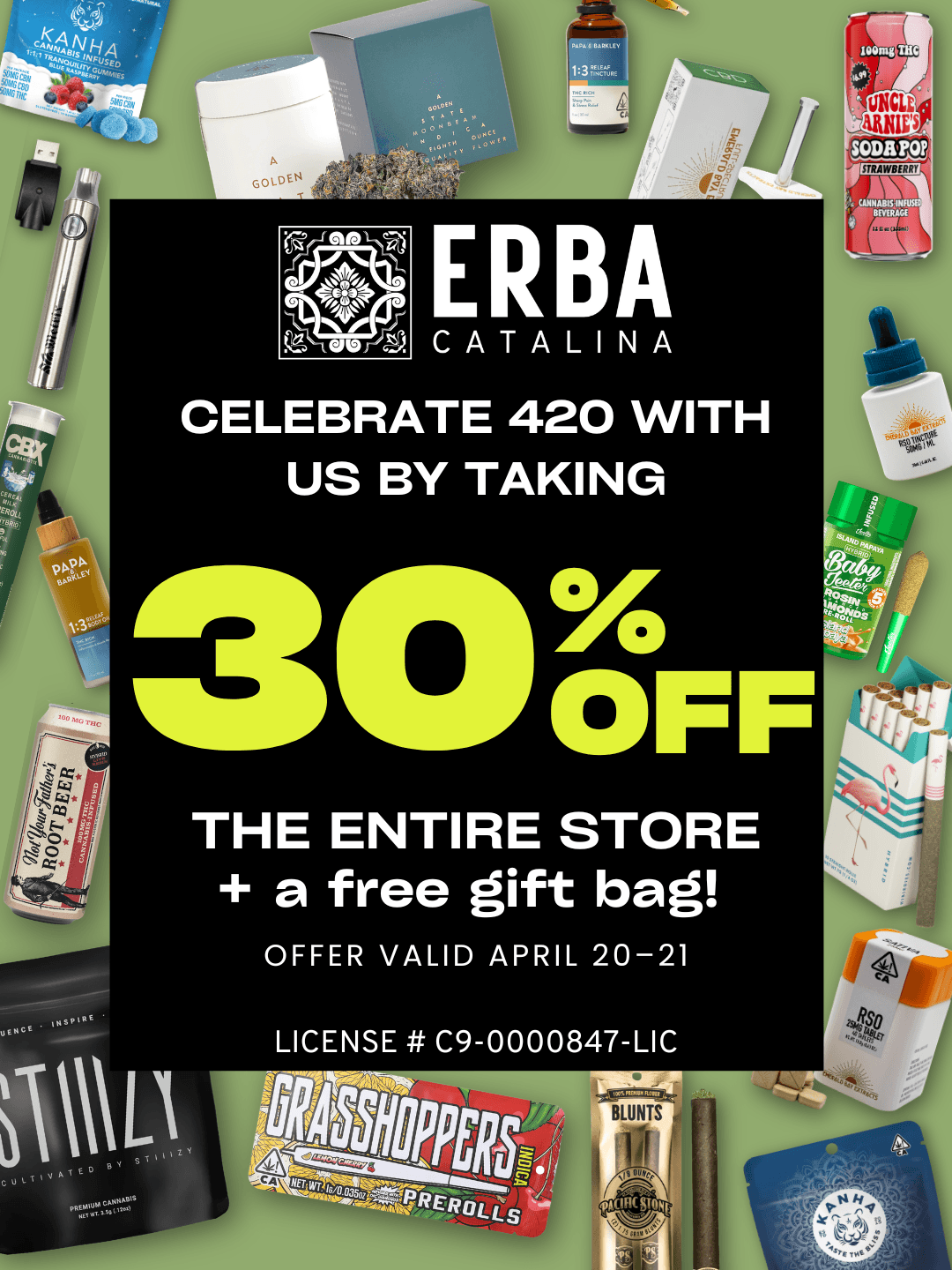Welcome to ERBA Catalina, your exclusive licensed destination for medical marijuana with free local delivery on Catalina Island, proudly serving Avalon, CA. We're committed to providing a superior customer experience, with a wide selection of the latest high-quality cannabis products.